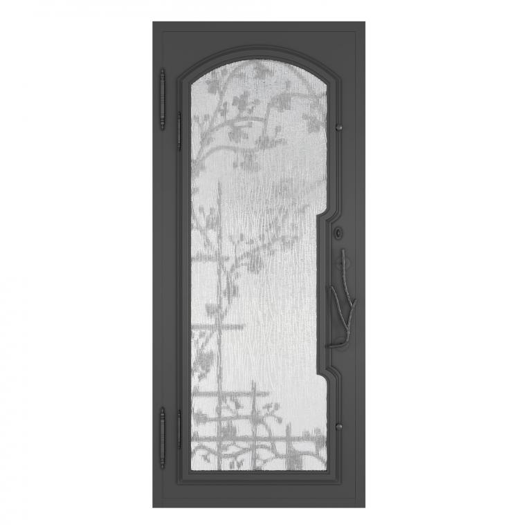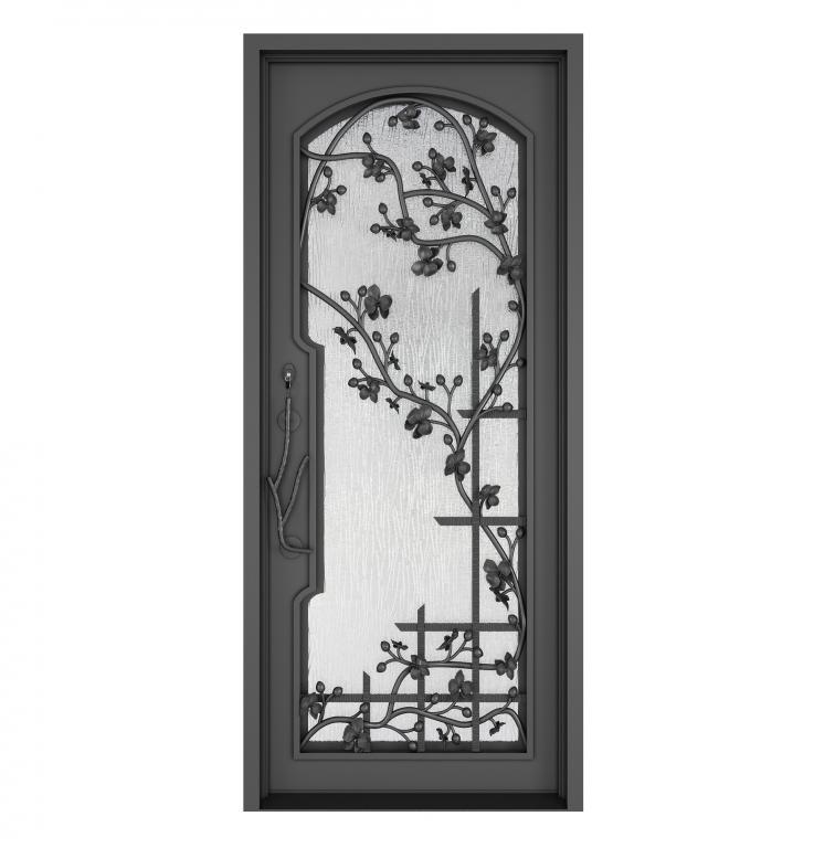 | ORCHID RH WROUGHT IRON Style 42 X 96 RIGHT HAND INSWING FLAT BLACK Color RAIN Glass STEEL Material PULL HANDLE #069 VITO - D107 - BL - S - SINGLE SQUARE TOP Art Deco, Mediterranean, Spanish, Italianate Style wScreen (Pull Handles and Locks are price separately) | |