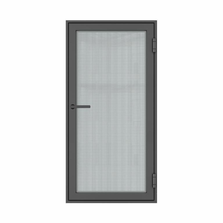 LITITZ RH Wrought Iron Door 42 X 96 RIGHT HAND INSWING FLAT BLACK Color SANDBLAST Glass STEEL Material PULL HANDLE #006 SQUARE DEADBOLT SINGLE SQUARE TOP Modern, Contemporary, Art Deco Style solid, Residential, Commercial (Pull Handles and Locks are price separately)