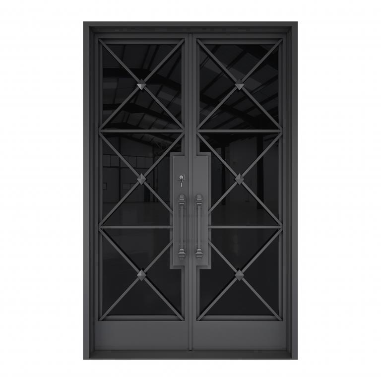 | NANO LH WROUGHT IRON Style 61 X 96 LEFT HAND INSWING FLAT BLACK Color BLACK OVER BLACK Glass STEEL Material PULL HANDLE #025 VITO - D107 - BL - S - DOUBLE SQUARE TOP Modern, Contemporary, Art Deco Style wScreen (Pull Handles and Locks are price separately) | |