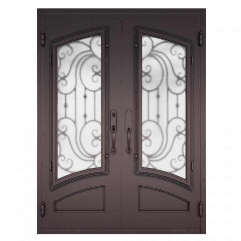 | CUSTOM #1052 PK147 WROUGHT IRON Style 61 X 81 RIGHT HAND INSWING MEDIUM BRUSHED COPPER (05) Color SANDBLAST + CLEAR Glass ROCCO - 9601-ORB- ET - ACTIVE SQUARE TOP wScreen (Pull Handles and Locks are price separately) | |