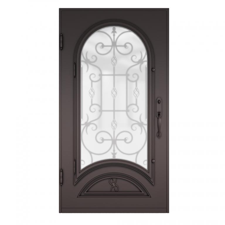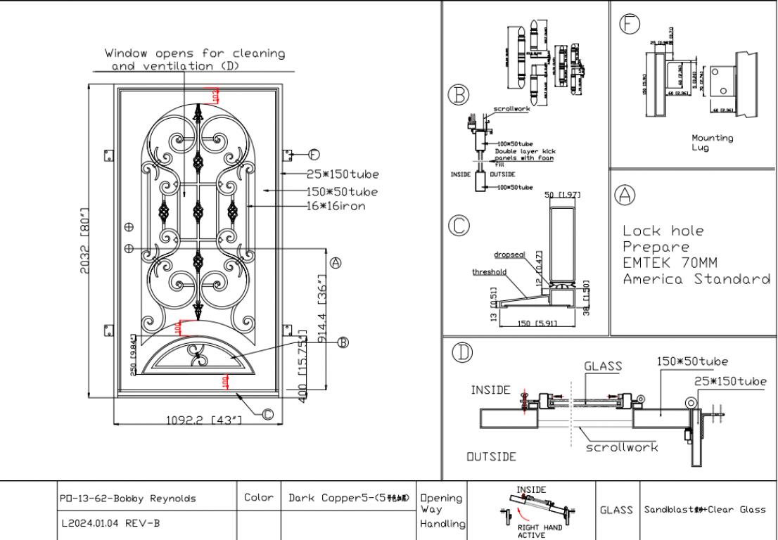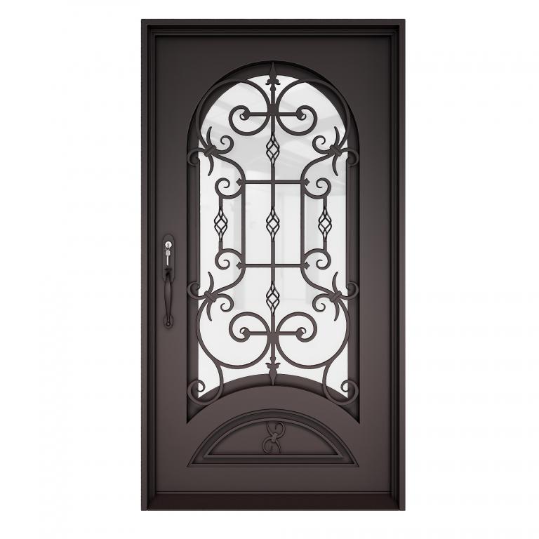 | CUSTOM #1076 PK173 WROUGHT IRON Style 43 X 80 RIGHT HAND INSWING DARK COPPER Color SANDBLAST + CLEAR Glass ROCCO - 9601-ORB- ET - ACTIVE DOUBLE SQUARE TOP (Pull Handles and Locks are price separately) | |
