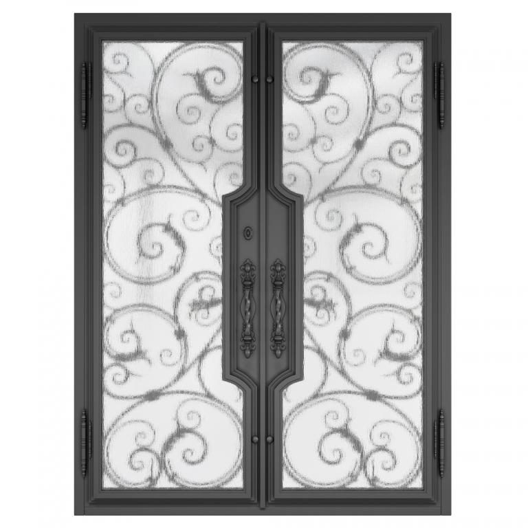 | CHARLOTTE RH WROUGHT IRON Style 72 X 96 RIGHT HAND INSWING FLAT BLACK Color RAIN Glass STEEL Material PULL HANDLE #019 VITO - D107 - BL - S - DOUBLE SQUARE TOP Mediterranean, Spanish, Italianate Style wScreen (Pull Handles and Locks are price separately) | |