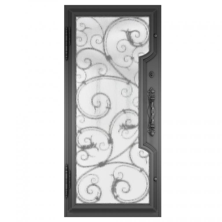 | CHARLOTTE RH WROUGHT IRON Style 37 X 81 RIGHT HAND INSWING FLAT BLACK Color RAIN Glass STEEL Material PULL HANDLE #019 VITO - D107 - BL - S - SINGLE SQUARE TOP Mediterranean, Spanish, Italianate Style wScreen (Pull Handles and Locks are price separately) | |