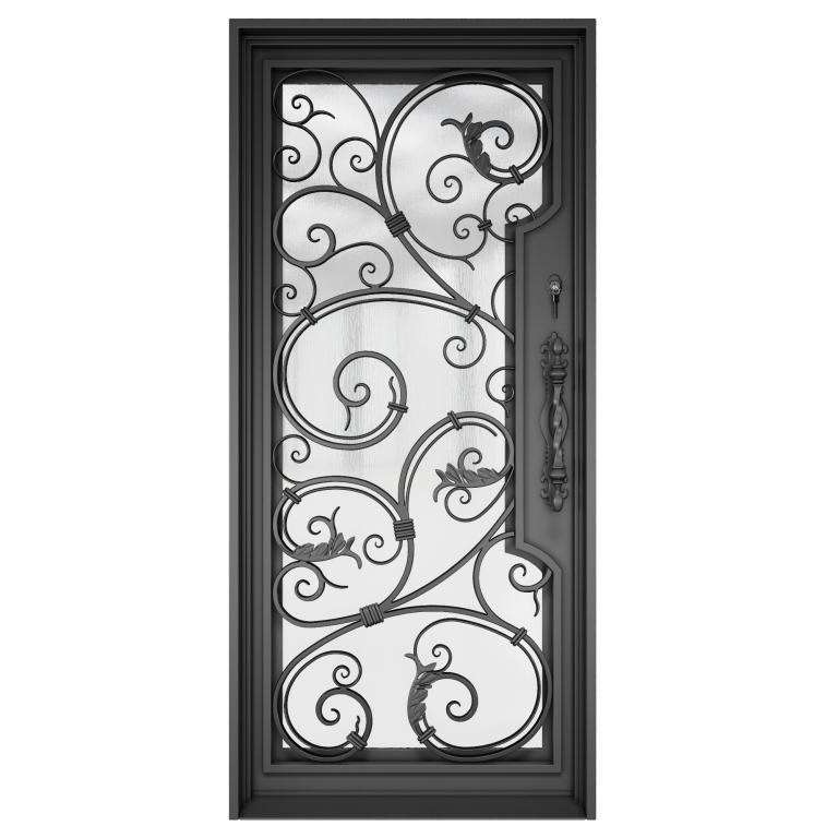 | CHARLOTTE LH WROUGHT IRON Style 37 X 81 LEFT HAND INSWING FLAT BLACK Color RAIN Glass STEEL Material PULL HANDLE #019 VITO - D107 - BL - S - SINGLE SQUARE TOP Mediterranean, Spanish, Italianate Style wScreen (Pull Handles and Locks are price separately) | |