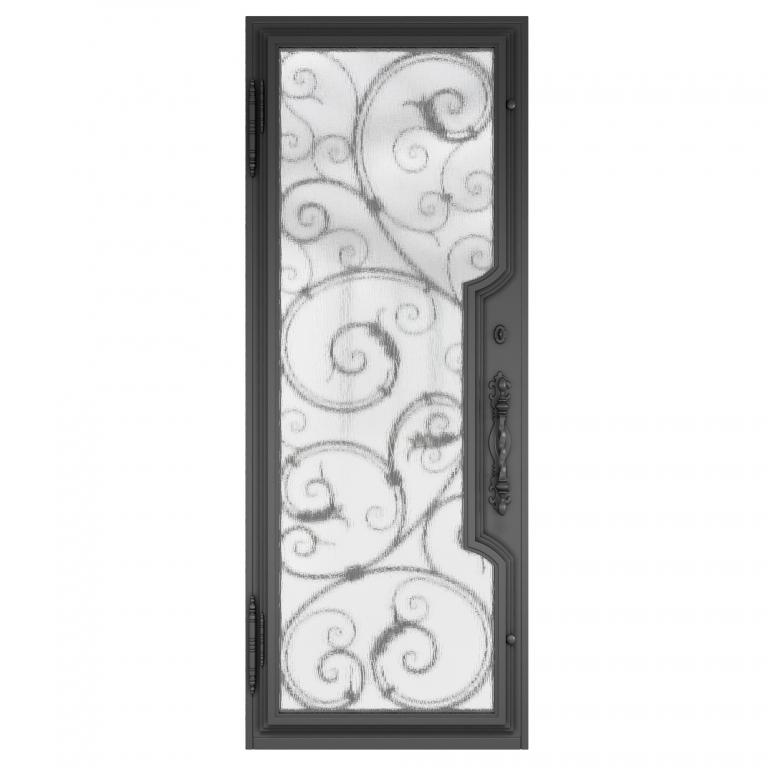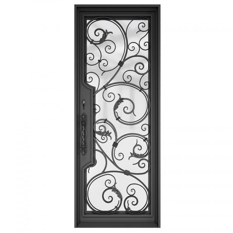 | CHARLOTTE RH WROUGHT IRON Style 37 X 96 RIGHT HAND INSWING FLAT BLACK Color RAIN Glass STEEL Material PULL HANDLE #019 VITO - D107 - BL - S - SINGLE SQUARE TOP Mediterranean, Spanish, Italianate Style wScreen (Pull Handles and Locks are price separately) | |