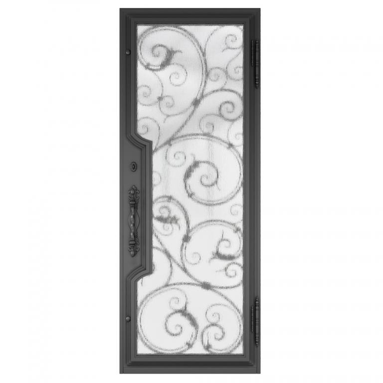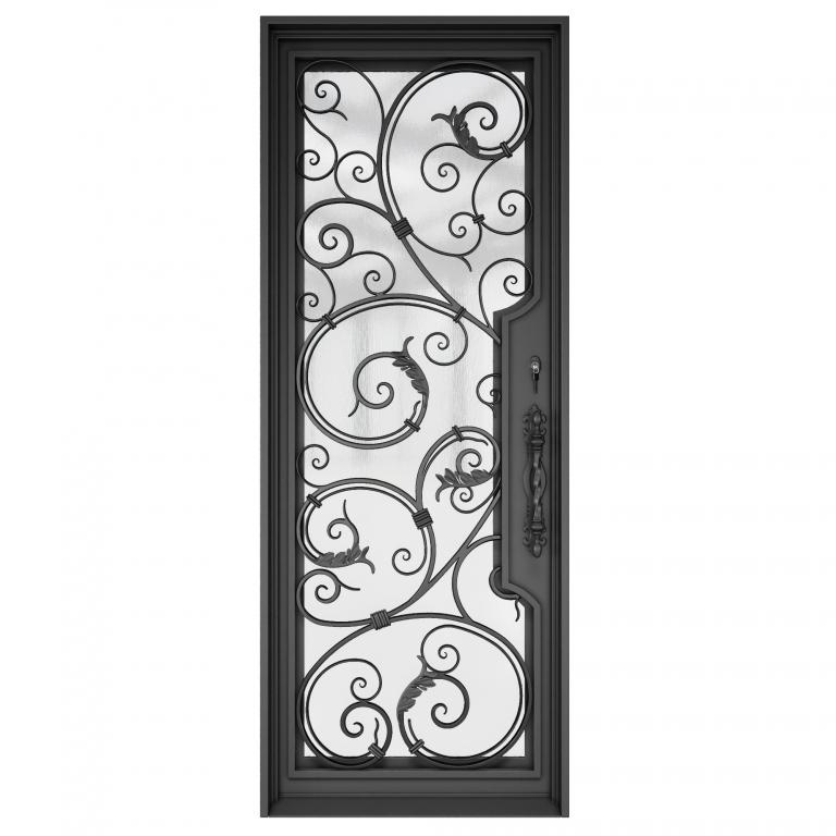 | CHARLOTTE LH WROUGHT IRON Style 37 X 96 LEFT HAND INSWING FLAT BLACK Color RAIN Glass STEEL Material PULL HANDLE #019 VITO - D107 - BL - S - SINGLE SQUARE TOP Mediterranean, Spanish, Italianate Style wScreen (Pull Handles and Locks are price separately) | |