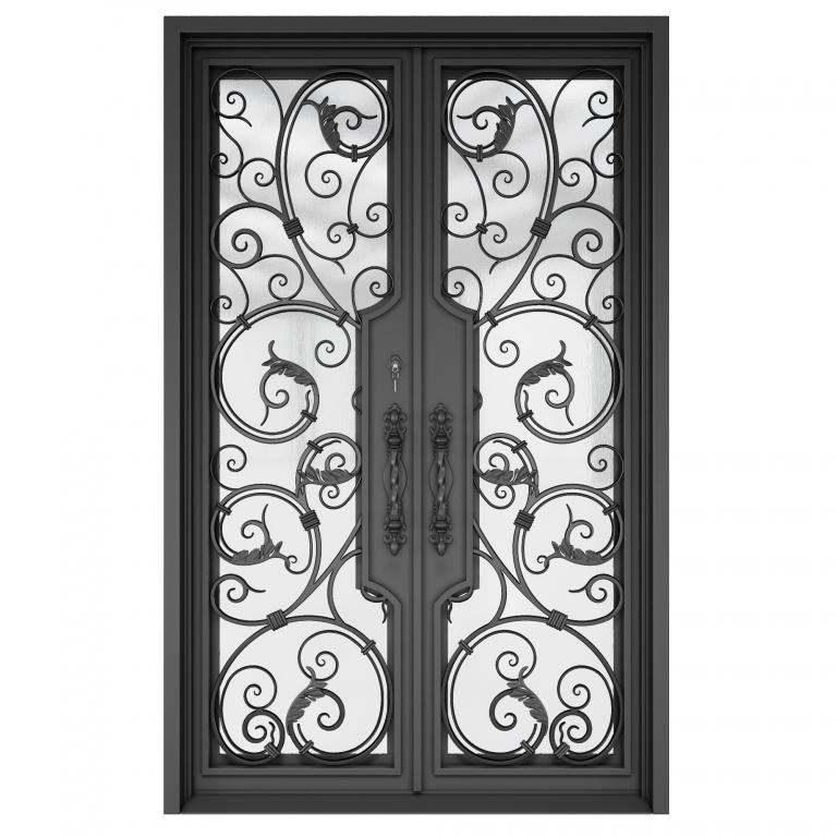| CHARLOTTE Thermal Break LH WROUGHT IRON Style 61 X 96 LEFT HAND INSWING FLAT BLACK Color RAIN Glass STEEL Material PULL HANDLE #019 VITO - D107 - BL - S - DOUBLE SQUARE TOP Mediterranean, Spanish, Italianate Style wScreen, Thermal Break (Pull Handles and Locks are price separately) | |