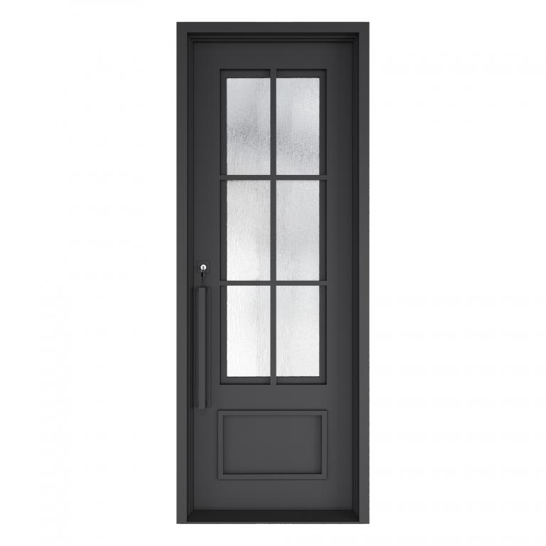 | ESSEX THERMAL BREAK RH WROUGHT IRON Style 37 X 96 RIGHT HAND INSWING FLAT BLACK Color RAIN Glass STEEL Material PULL HANDLE #006 VITO - D107 - BL - S - SINGLE SQUARE TOP Modern, Farmhouse, Craftsman Style wScreen, Thermal Break (Pull Handles and Locks are price separately) | |