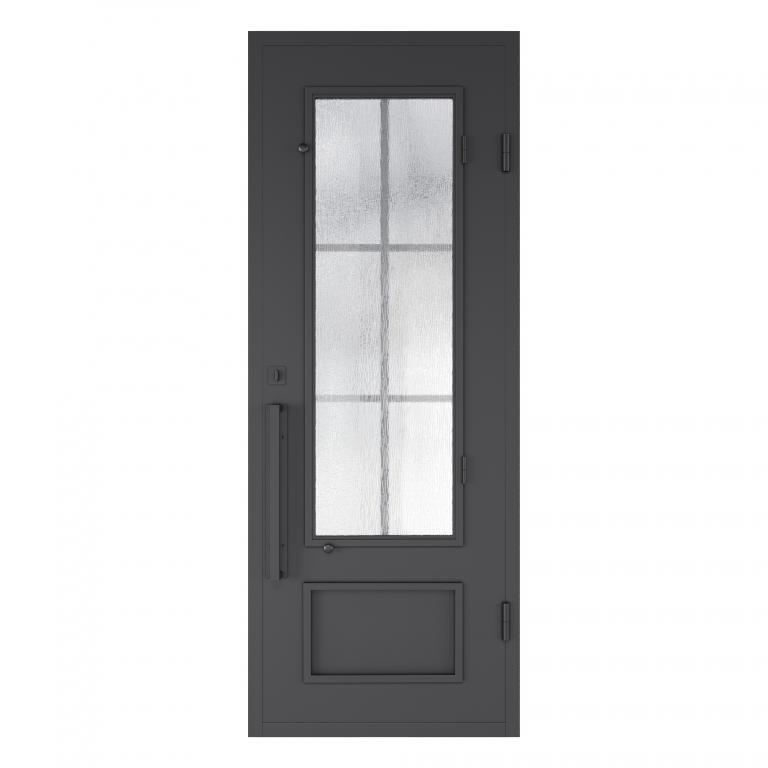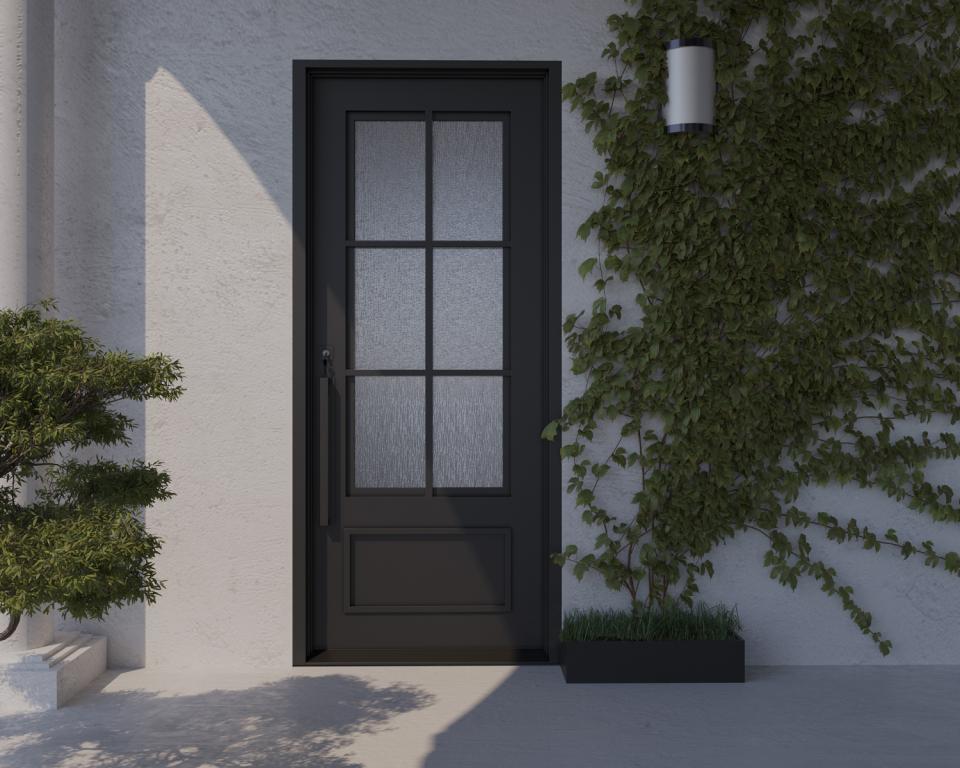| ESSEX THERMAL BREAK LH WROUGHT IRON Style 37 X 96 LEFT HAND INSWING FLAT BLACK Color RAIN Glass STEEL Material PULL HANDLE #006 VITO - D107 - BL - S - SINGLE SQUARE TOP Modern, Farmhouse, Craftsman Style wScreen, Thermal Break (Pull Handles and Locks are price separately) | |