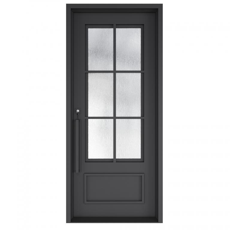 | ESSEX RH THERMAL BREAK WROUGHT IRON Style 42 X 96 RIGHT HAND INSWING FLAT BLACK Color RAIN Glass STEEL Material PULL HANDLE #006 VITO - D107 - BL - S - SINGLE SQUARE TOP Modern, Contemporary Style wScreen, Thermal Break (Pull Handles and Locks are price separately) | |
