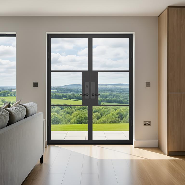 | 6 PANE FRENCH DOOR THERMAL BREAK RH FRENCH Style 61 X 81 RIGHT HAND INSWING FLAT BLACK Color CLEAR Glass STEEL Material TANGO - 305A10 - BL - ET - ACTIVE DOUBLE SQUARE TOP Modern, Contemporary Style Thermal Break (Pull Handles and Locks are price separately) | |