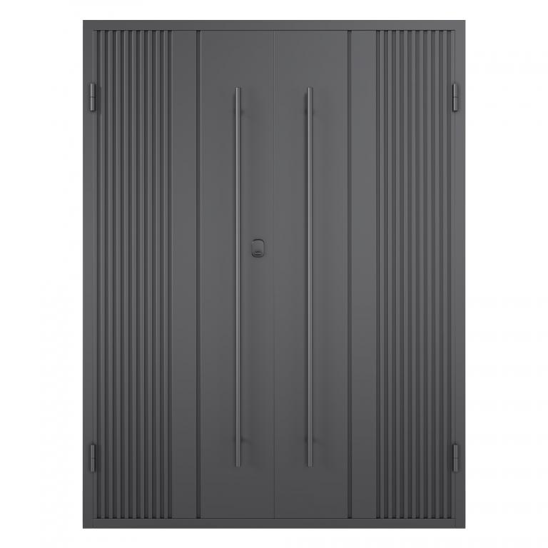 | VICENTE RH WROUGHT IRON Style 61 X 81 RIGHT HAND INSWING FLAT BLACK Color STEEL Material PULL HANDLE #057 FLAT BLACK ROUND 70" VITO - D107 - BL - S - DOUBLE SQUARE TOP Modern, Contemporary Style (Pull Handles and Locks are price separately) | |