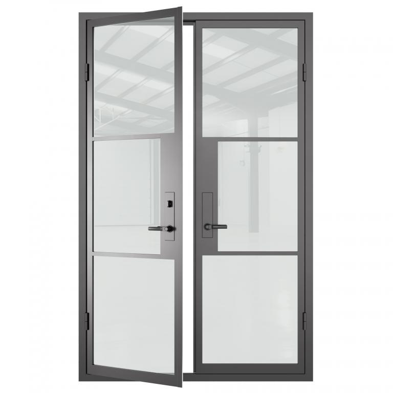 | 6 PANE FRENCH DOOR THERMAL BREAK RH FRENCH Style 61 X 96 RIGHT HAND INSWING FLAT BLACK Color CLEAR Glass STEEL Material DOUBLE SQUARE TOP Thermal Break | |