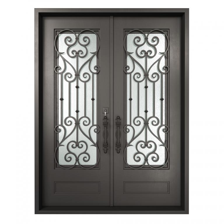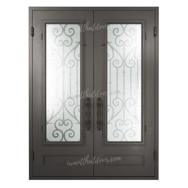 | VATICAN LH Wrought Iron Door 72 X 96 LEFT HAND INSWING MEDIUM COPPER Color RAIN Glass STEEL Material PULL HANDLE #018 SQUARE DEADBOLT DOUBLE SQUARE TOP Mediterranean, Spanish, Italianate, Religious Style Residential, Commercial (Pull Handles and Locks are price separately) | |