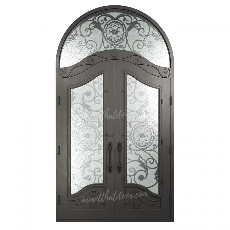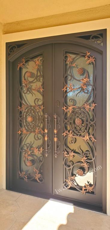 | DENVER RH Wrought Iron Door 72 X 132 RIGHT HAND INSWING MEDIUM COPPER Color NEW AQUATEX Glass STEEL Material PULL HANDLE #005 SQUARE DEADBOLT 8469 - SINGLE CYLINDER (OIL RUBBED BRONZE (US10B)) DOUBLE FULL ROUND Mediterranean, Spanish, Italianate, Religious Style wTransom, Residential, Commercial (Pull Handles and Locks are price separately) | |