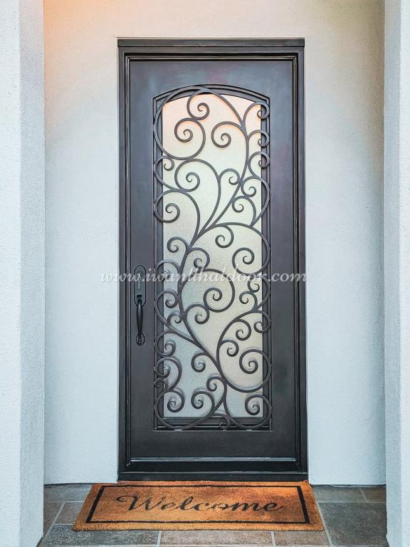 | TUSCANY LH Wrought Iron Door 42 X 96 LEFT HAND INSWING DARK COPPER Color SANDBLAST Glass STEEL Material PULL HANDLE #019 SQUARE DEADBOLT SINGLE SQUARE TOP Mediterranean, Spanish, Italianate Style solid, Residential, Commercial (Pull Handles and Locks are price separately) | |