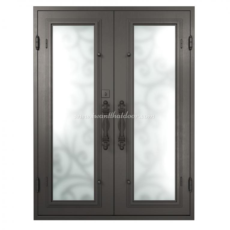 | TUSCANY RH Wrought Iron Door 61 X 81 RIGHT HAND INSWING MEDIUM COPPER Color SANDBLAST Glass STEEL Material PULL HANDLE #018 SQUARE DEADBOLT DOUBLE SQUARE TOP Mediterranean, Spanish, Italianate Style Residential, Commercial (Pull Handles and Locks are price separately) | |
