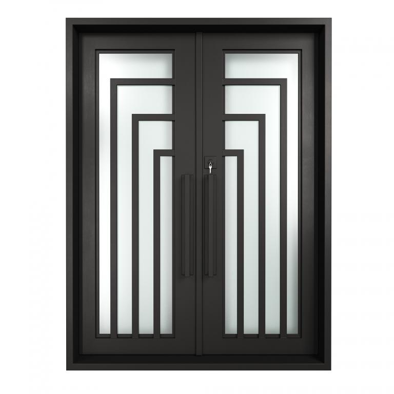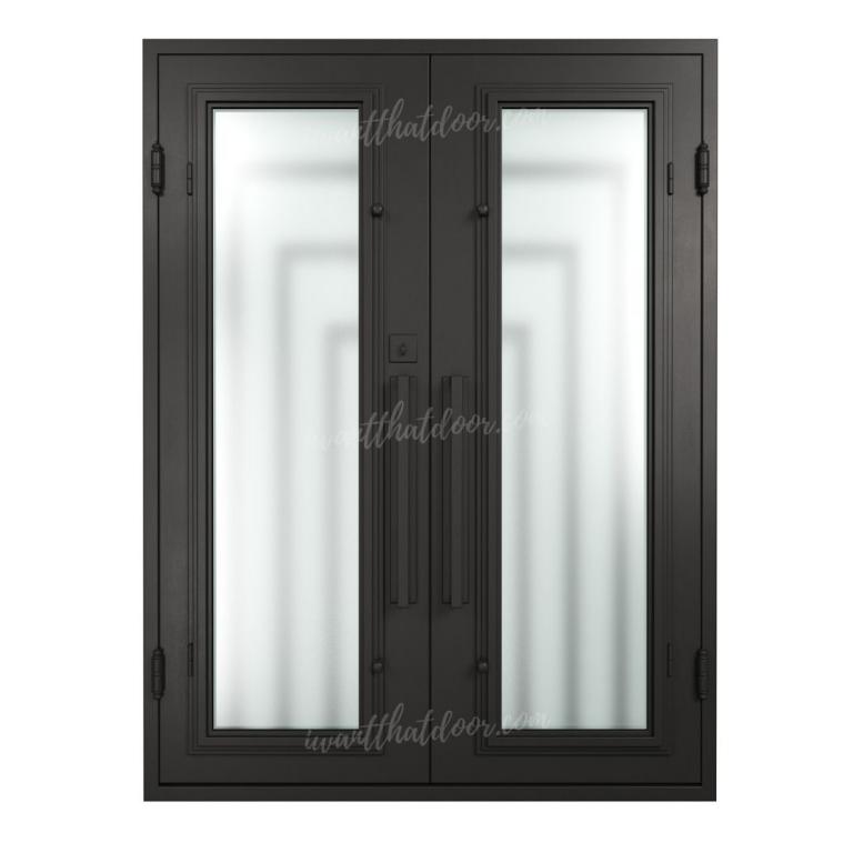 | PIAZZA RH WROUGHT IRON Style 61 X 81 RIGHT HAND INSWING FLAT BLACK Color SANDBLAST Glass STEEL Material PULL HANDLE #006 SQUARE DEADBOLT 8469 - SINGLE CYLINDER (FLAT BLACK (US19)) DOUBLE SQUARE TOP Modern Style Residential, Commercial (Pull Handles and Locks are price separately) | |
