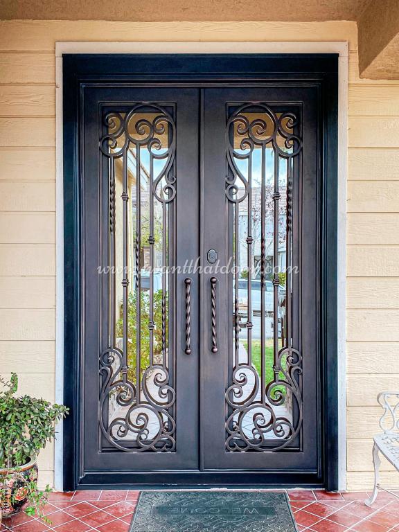 | ELITE 2773 LH Wrought Iron Door 61 X 81 LEFT HAND INSWING MEDIUM COPPER Color RAIN Glass STEEL Material PULL HANDLE #020 SQUARE DEADBOLT DOUBLE SQUARE TOP Mediterranean, Spanish Style Residential, Commercial (Pull Handles and Locks are price separately) | |