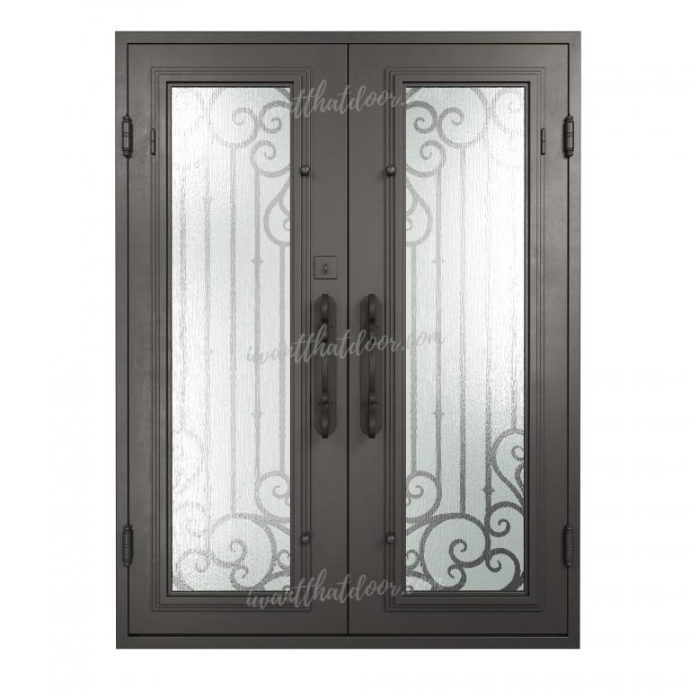 | ELITE 2773 RH Wrought Iron Door 61 X 81 RIGHT HAND INSWING MEDIUM COPPER Color RAIN Glass STEEL Material PULL HANDLE #012 SQUARE DEADBOLT DOUBLE SQUARE TOP Mediterranean, Spanish Style Residential, Commercial (Pull Handles and Locks are price separately) | |