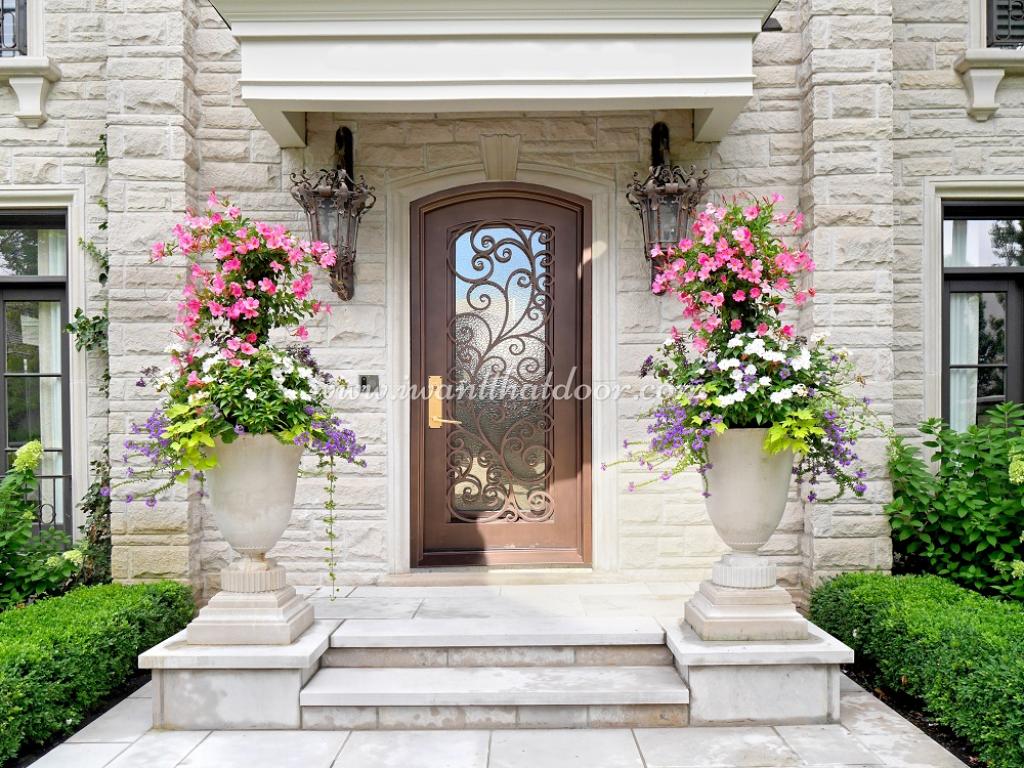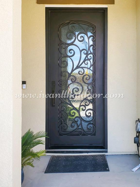 | TUSCANY RH WROUGHT IRON Style 42 X 96 RIGHT HAND INSWING MEDIUM COPPER Color SANDBLAST Glass STEEL Material PULL HANDLE #019 SQUARE DEADBOLT SINGLE EYEBROW TOP Mediterranean, Spanish, Italianate Style solid, Residential, Commercial (Pull Handles and Locks are price separately) | |