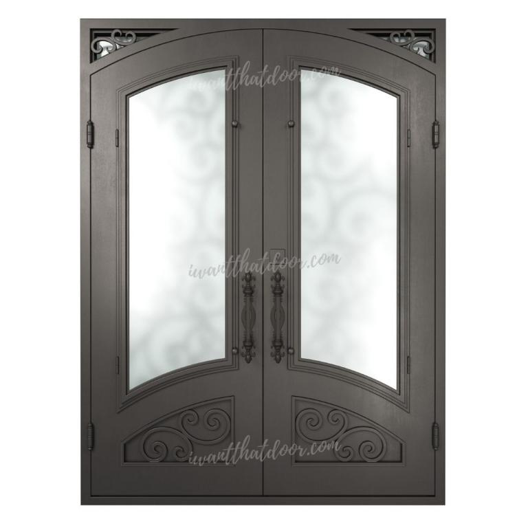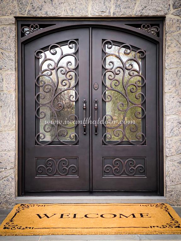 | TUSCANY CUSTOM 10 LH Wrought Iron Door 72 X 96 LEFT HAND INSWING MEDIUM COPPER Color SANDBLAST Glass STEEL Material PULL HANDLE #020 SQUARE DEADBOLT DOUBLE SQUARE TOP Mediterranean, Spanish, Italianate Style Residential, Commercial (Pull Handles and Locks are price separately) | |