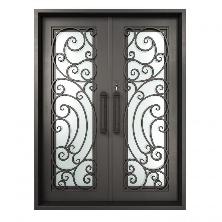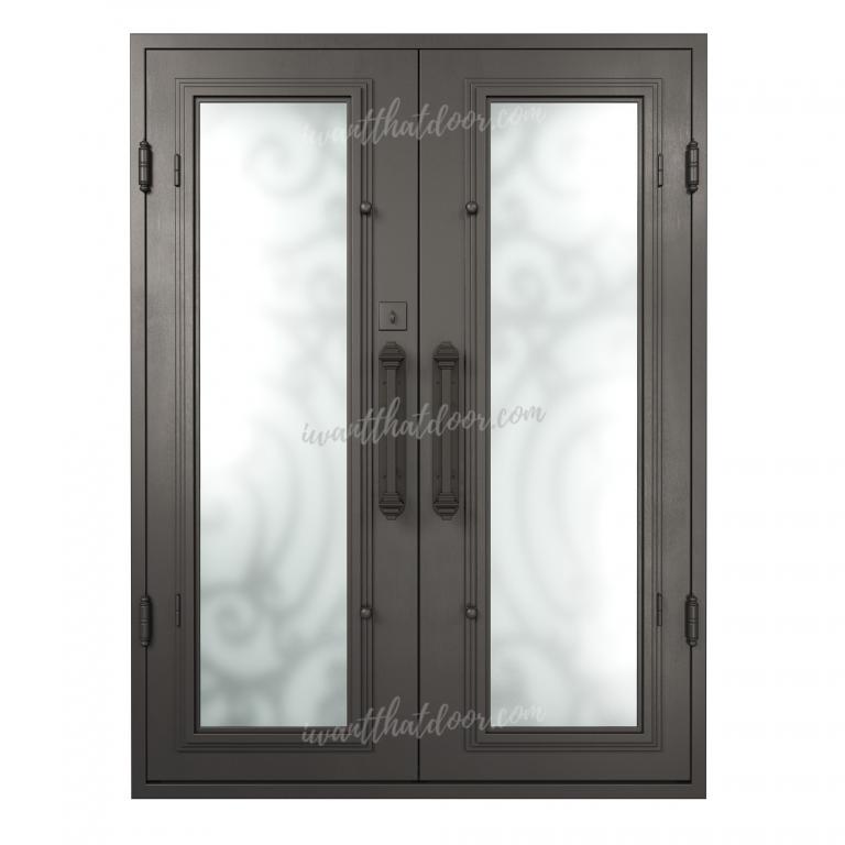 | TIFFANY RH Wrought Iron Door 61 X 81 RIGHT HAND INSWING MEDIUM COPPER Color SANDBLAST Glass STEEL Material PULL HANDLE #025 SQUARE DEADBOLT DOUBLE SQUARE TOP Mediterranean, Spanish, Italianate Style Residential, Commercial (Pull Handles and Locks are price separately) | |