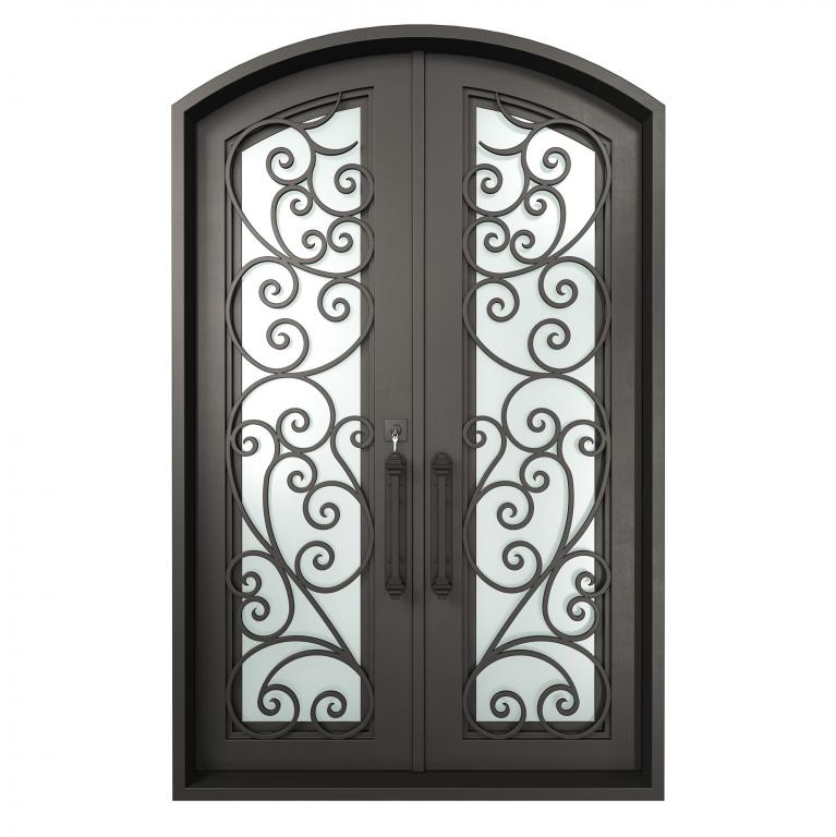 | TUSCANY LH WROUGHT IRON Style 61 X 96 LEFT HAND INSWING MEDIUM COPPER Color SANDBLAST Glass STEEL Material PULL HANDLE #025 VITO - D107 - BL - S - DOUBLE EYEBROW TOP Mediterranean, Spanish, Italianate Style Residential, Commercial (Pull Handles and Locks are price separately) | |