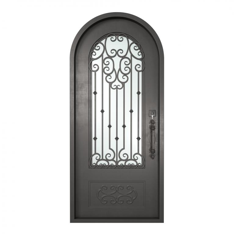 | AROMA LH Wrought Iron Door 42 X 96 LEFT HAND INSWING MEDIUM COPPER Color SANDBLAST Glass STEEL Material PULL HANDLE #020 SQUARE DEADBOLT SINGLE FULL ROUND Mediterranean, Spanish, Italianate Style solid, Residential, Commercial (Pull Handles and Locks are price separately) | |