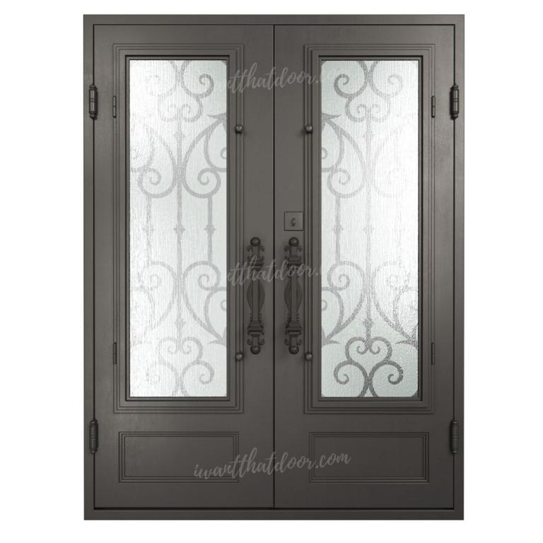 | VATICAN LH Wrought Iron Door 61 X 81 LEFT HAND INSWING MEDIUM COPPER Color RAIN Glass STEEL Material PULL HANDLE #018 SQUARE DEADBOLT DOUBLE SQUARE TOP Mediterranean, Spanish, Italianate, Religious Style Residential, Commercial (Pull Handles and Locks are price separately) | |