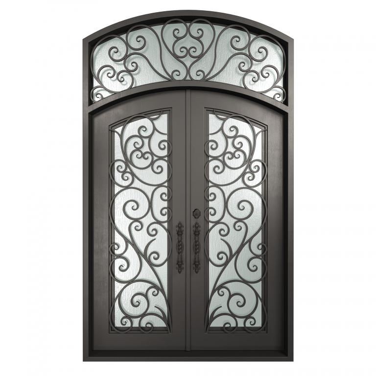 | TUSCANY WITH ATTACHED TRANSOM RH Wrought Iron Door 72 X 120 RIGHT HAND INSWING MEDIUM COPPER Color RAIN Glass STEEL Material PULL HANDLE #019 SQUARE DEADBOLT DOUBLE EYEBROW TOP Mediterranean, Spanish, Italianate Style wTransom, Residential, Commercial (Pull Handles and Locks are price separately) | |