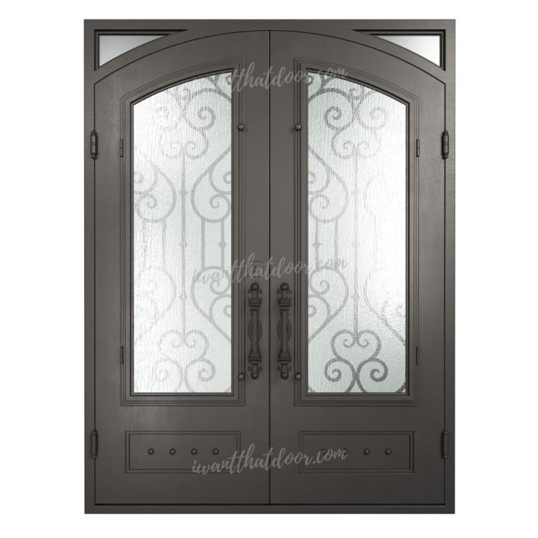 | VATICAN RH SQUARE TOP WITH EYEBROW DOORS Wrought Iron Door 72 X 96 RIGHT HAND INSWING MEDIUM COPPER Color RAIN Glass STEEL Material PULL HANDLE #018 SQUARE DEADBOLT DOUBLE SQUARE TOP Mediterranean, Spanish, Italianate, Religious Style Residential, Commercial (Pull Handles and Locks are price separately) | |