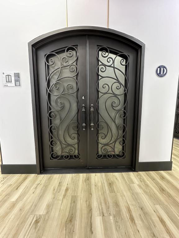 | TUSCANY 7TH LH Wrought Iron Door 72 X 96 LEFT HAND INSWING MEDIUM COPPER Color SANDBLAST Glass STEEL Material PULL HANDLE #018 SQUARE DEADBOLT DOUBLE EYEBROW TOP Mediterranean, Spanish, Italianate Style Residential, Commercial (Pull Handles and Locks are price separately) | |