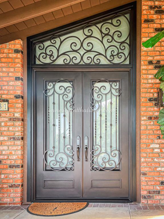 | ELITE 2773 LH Wrought Iron Door 61 X 96 LEFT HAND INSWING MEDIUM COPPER Color SANDBLAST Glass STEEL Material PULL HANDLE #019 SQUARE DEADBOLT DOUBLE SQUARE TOP Mediterranean, Spanish Style Residential, Commercial (Pull Handles and Locks are price separately) | |