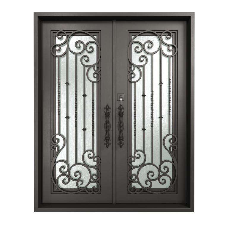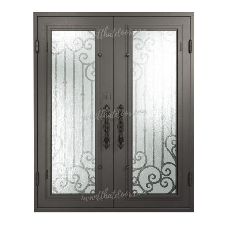 | ELITE 2773 RH Wrought Iron Door 65 X 81 RIGHT HAND INSWING MEDIUM COPPER Color RAIN Glass STEEL Material PULL HANDLE #019 SQUARE DEADBOLT DOUBLE SQUARE TOP Mediterranean, Spanish, Italianate Style Residential, Commercial (Pull Handles and Locks are price separately) | |