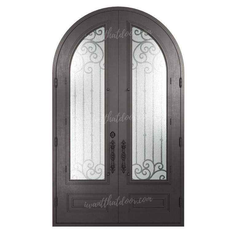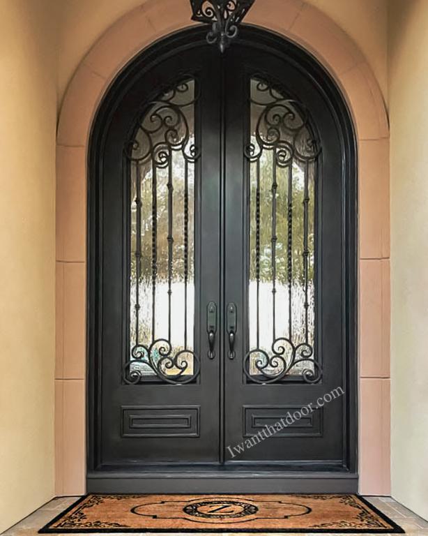 | ELITE 2773 RH Wrought Iron Door 72 X 120 RIGHT HAND INSWING MEDIUM COPPER Color RAIN Glass STEEL Material PULL HANDLE #019 SQUARE DEADBOLT DOUBLE FULL ROUND Mediterranean, Spanish, Italianate Style Residential, Commercial (Pull Handles and Locks are price separately) | |