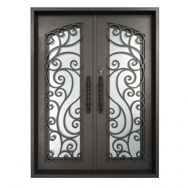 | TUSCANY 7TH RH Wrought Iron Door 61 X 81 RIGHT HAND INSWING MEDIUM COPPER Color RAIN Glass STEEL Material PULL HANDLE #019 SQUARE DEADBOLT DOUBLE SQUARE TOP Mediterranean, Spanish Style Residential, Commercial (Pull Handles and Locks are price separately) | |