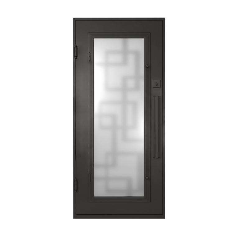| GIZA RH WROUGHT IRON Style 37 X 81 RIGHT HAND INSWING FLAT BLACK Color SANDBLAST Glass STEEL Material PULL HANDLE #006 SQUARE DEADBOLT 8469 - SINGLE CYLINDER (FLAT BLACK (US19)) SINGLE SQUARE TOP Modern Style special, solid, Residential, Commercial (Pull Handles and Locks are price separately) | |
