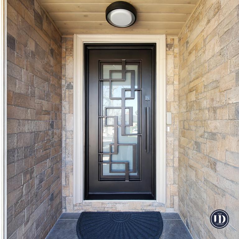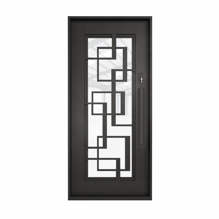 | GIZA LH WROUGHT IRON Style 37 X 81 LEFT HAND INSWING FLAT BLACK Color SANDBLAST Glass STEEL Material PULL HANDLE #006 SQUARE DEADBOLT SINGLE SQUARE TOP Modern Style Residential, Commercial (Pull Handles and Locks are price separately) | |