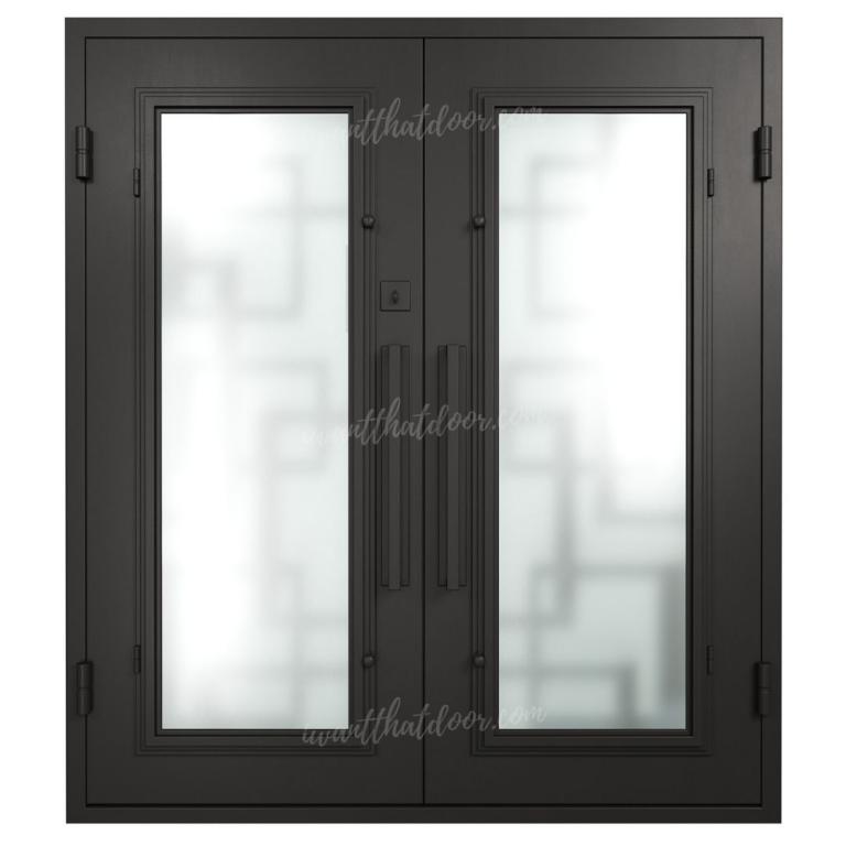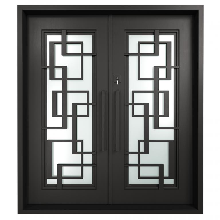 | GIZA RH WROUGHT IRON Style 72 X 81 RIGHT HAND INSWING FLAT BLACK Color SANDBLAST Glass STEEL Material PULL HANDLE #006 SQUARE DEADBOLT DOUBLE SQUARE TOP Modern Style Residential, Commercial (Pull Handles and Locks are price separately) | |