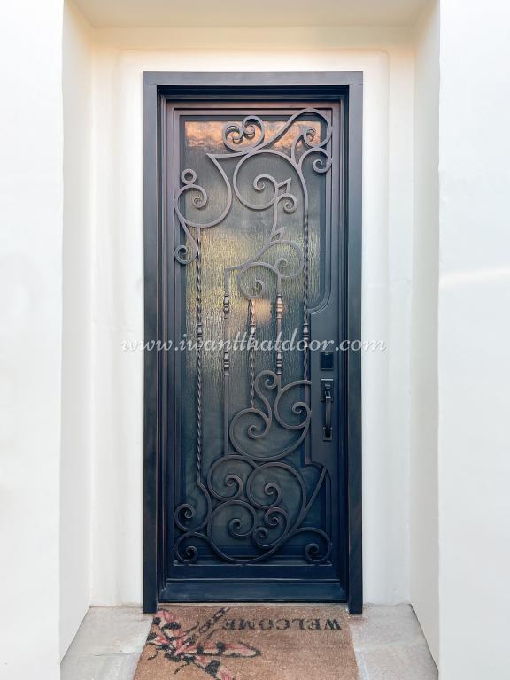 | TAMPA RH * WROUGHT IRON Style 40 X 96 RIGHT HAND INSWING MEDIUM COPPER Color RAIN Glass STEEL Material PULL HANDLE #018 VITO - D107 - BL - S - SINGLE SQUARE TOP Mediterranean, Spanish, Italianate Style solid, Residential, Commercial (Pull Handles and Locks are price separately) | |