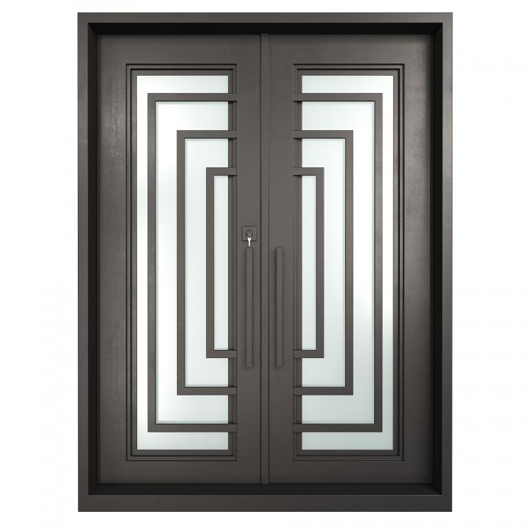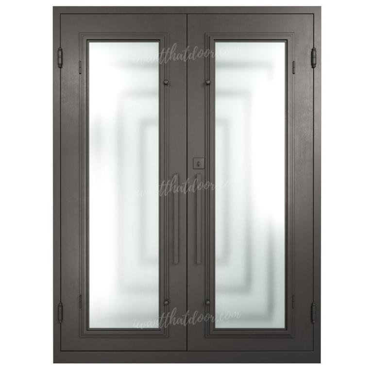 | REFLECTION LH Wrought Iron Door 61 X 81 LEFT HAND INSWING FLAT BLACK Color SANDBLAST Glass STEEL Material PULL HANDLE #006 SQUARE DEADBOLT DOUBLE SQUARE TOP Modern Style Residential, Commercial (Pull Handles and Locks are price separately) | |