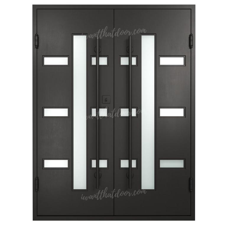 | TOKYO RH Wrought Iron Door 61 X 81 RIGHT HAND INSWING DARK COPPER Color SANDBLAST Glass STEEL Material PULL HANDLE #036 SQUARE DEADBOLT DOUBLE SQUARE TOP Modern, Contemporary Style Residential, Commercial (Pull Handles and Locks are price separately) | |