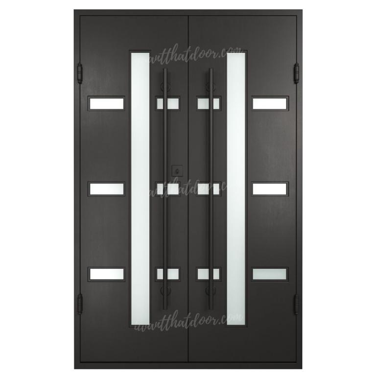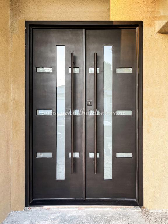 | TOKYO RH Wrought Iron Door 61 X 96 RIGHT HAND INSWING DARK COPPER Color SANDBLAST Glass STEEL Material PULL HANDLE #036 SQUARE DEADBOLT DOUBLE SQUARE TOP Modern, Contemporary Style Residential, Commercial (Pull Handles and Locks are price separately) | |