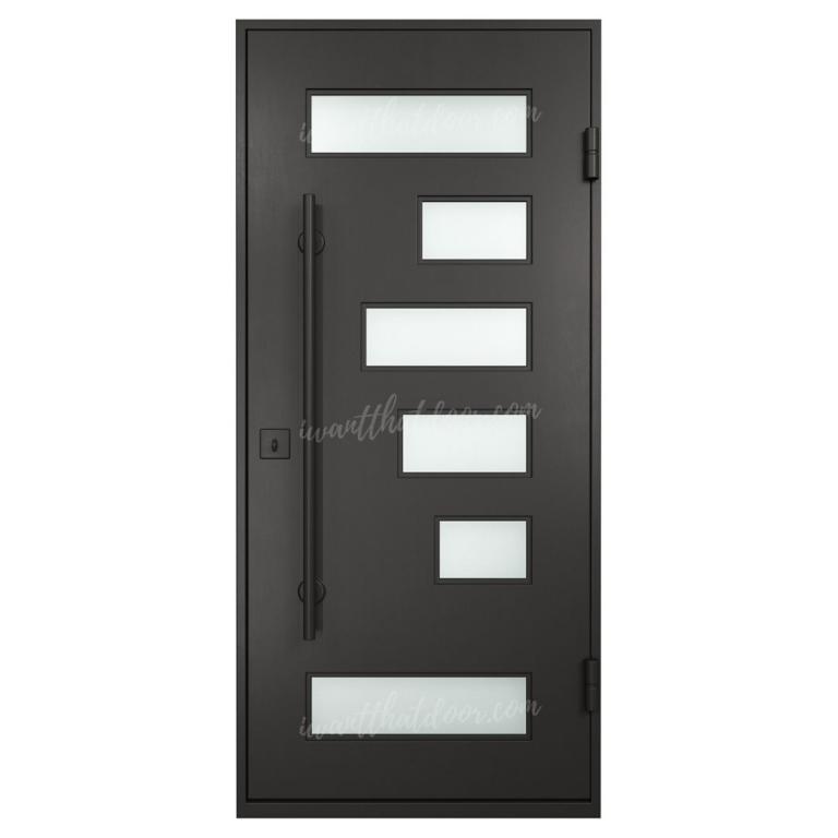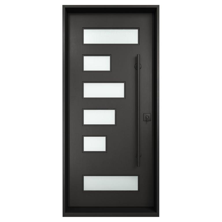 | PACO LH Wrought Iron Door 37 X 81 LEFT HAND INSWING FLAT BLACK Color SANDBLAST Glass STEEL Material PULL HANDLE #036 SQUARE DEADBOLT SINGLE SQUARE TOP Modern, Contemporary Style solid, Residential, Commercial (Pull Handles and Locks are price separately) | |