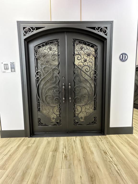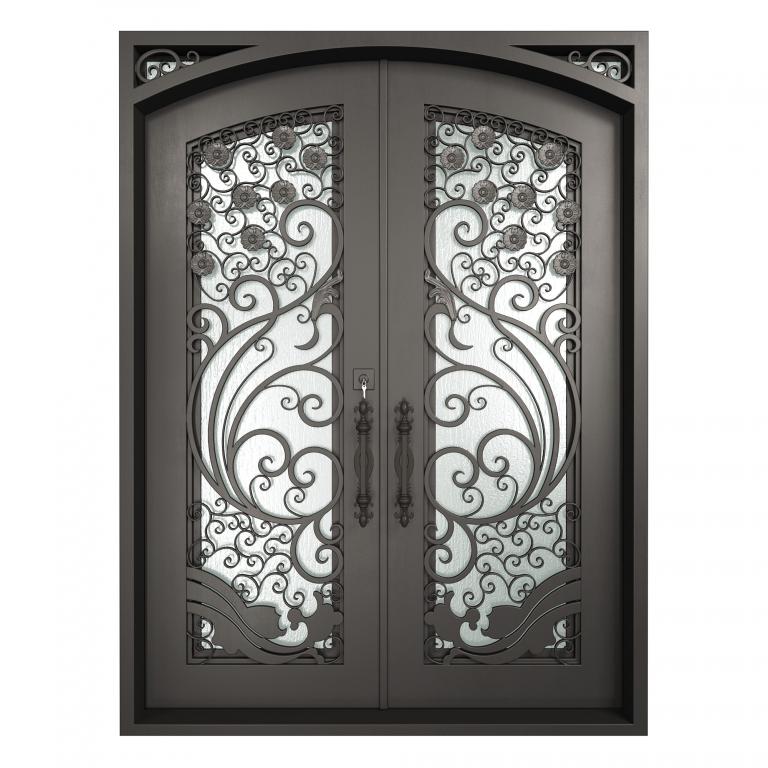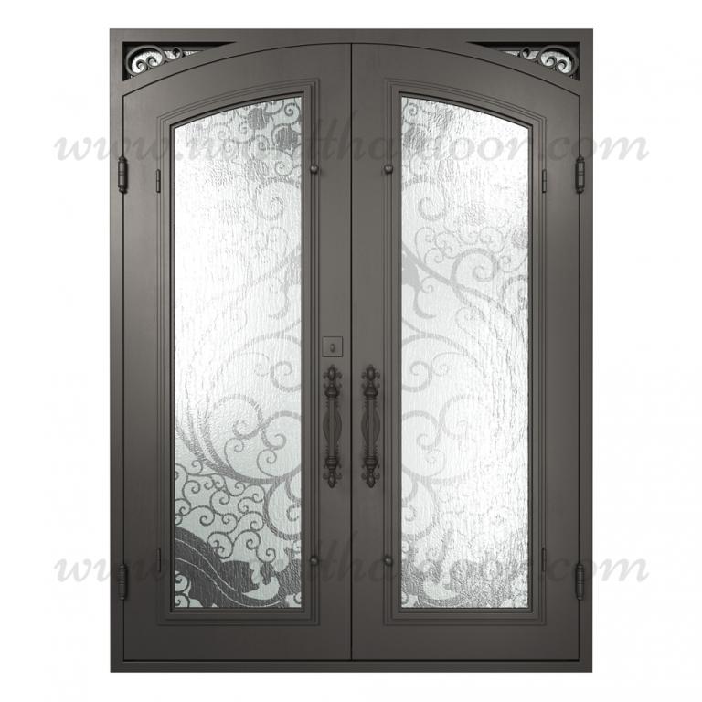 | APOLLO RH Wrought Iron Door 72 X 96 RIGHT HAND INSWING MEDIUM COPPER Color RAIN Glass STEEL Material PULL HANDLE #020 SQUARE DEADBOLT DOUBLE SQUARE TOP Mediterranean, Spanish, Italianate Style Residential, Commercial (Pull Handles and Locks are price separately) | |