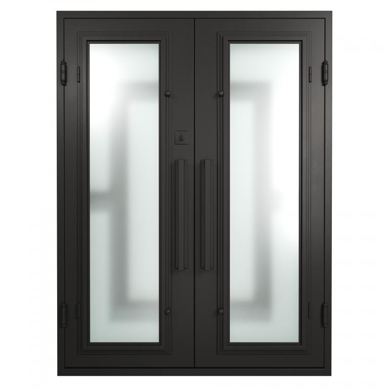 | OSLO RH Wrought Iron Door 61 X 81 RIGHT HAND INSWING FLAT BLACK Color SANDBLAST Glass STEEL Material PULL HANDLE #006 SQUARE DEADBOLT 8469 - SINGLE CYLINDER (FLAT BLACK (US19)) DOUBLE SQUARE TOP Modern, Contemporary Style (Pull Handles and Locks are price separately) | |