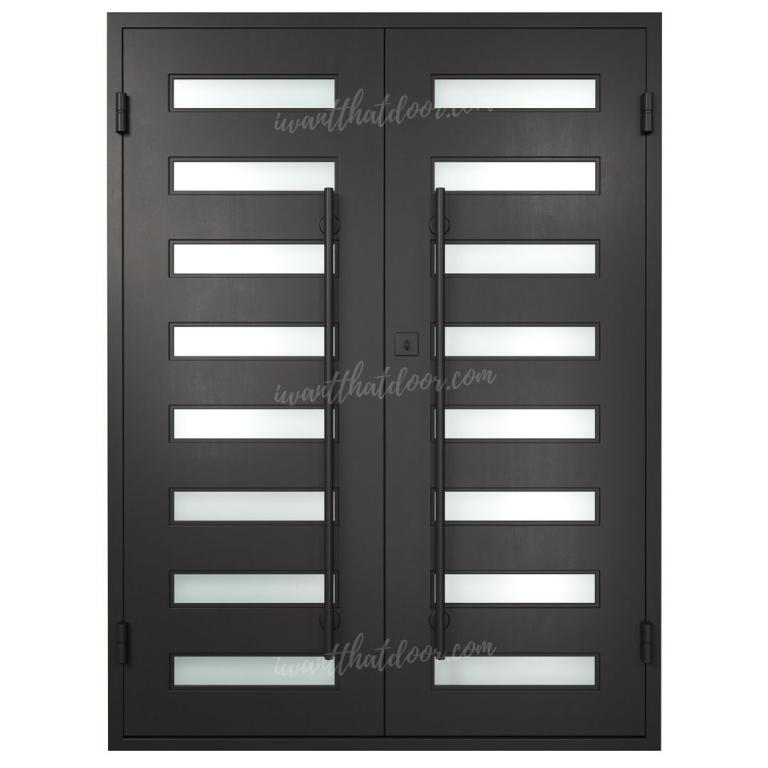 | THE BEAST 3 LH WROUGHT IRON Style 72 X 96 LEFT HAND INSWING FLAT BLACK Color SANDBLAST Glass STEEL Material PULL HANDLE #036 SQUARE DEADBOLT DOUBLE SQUARE TOP Modern, Contemporary, Art Deco Style Residential, Commercial (Pull Handles and Locks are price separately) | |
