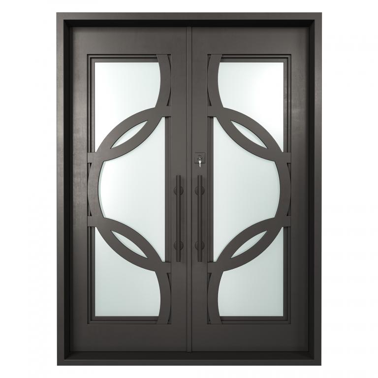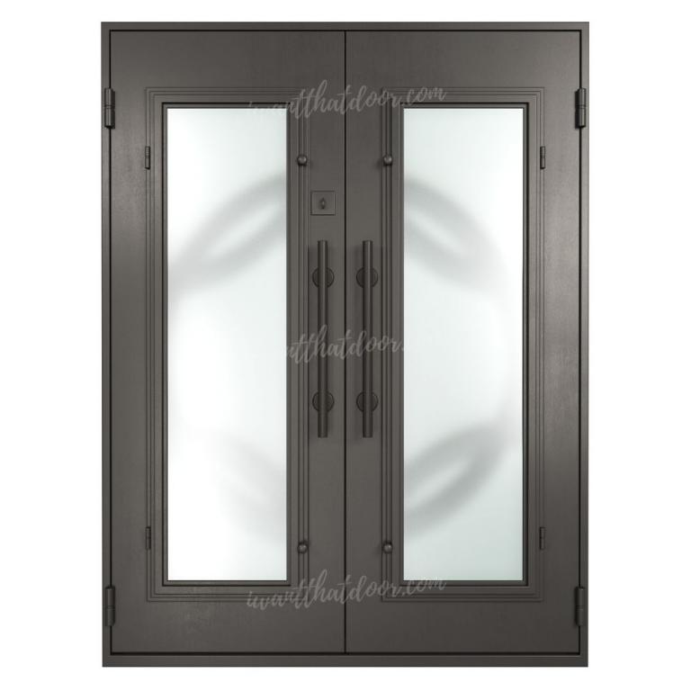 | ELYRIA RH WROUGHT IRON Style 61 X 81 RIGHT HAND INSWING FLAT BLACK Color SANDBLAST Glass STEEL Material PULL HANDLE #029 VITO - D107 - BL - S - DOUBLE SQUARE TOP Modern, Contemporary Style clearance, Residential, Commercial (Pull Handles and Locks are price separately) | |
