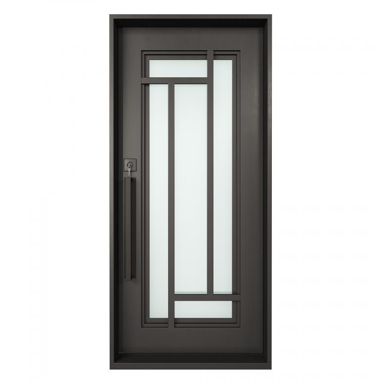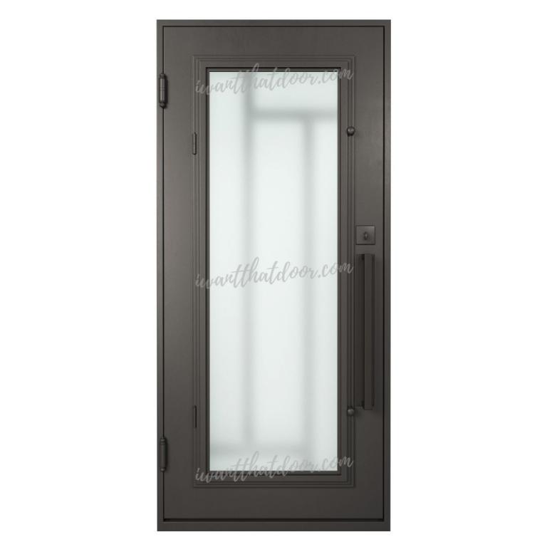 | PUZZLE RH * WROUGHT IRON Style 37 X 81 RIGHT HAND INSWING FLAT BLACK Color SANDBLAST Glass STEEL Material PULL HANDLE #006 VITO - D107 - BL - S - SINGLE SQUARE TOP Modern, Contemporary Style solid, Residential, Commercial (Pull Handles and Locks are price separately) | |